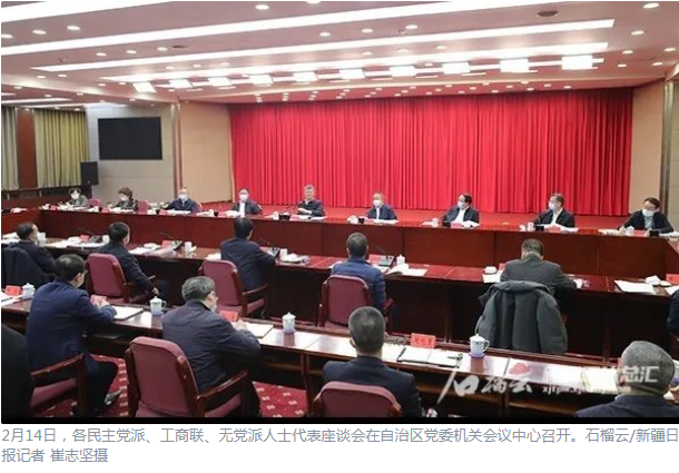 各民主党派、工商联、无党派人士代表座谈会2月14日下午在自治区党委机关会议中心召开,就坚持和完善中国共产党领导的多党合作和政治协商制度,深入学习贯彻习近平总书记关于新疆工作重要讲话重要指示精神,完整准确贯彻新时代党的治疆方略,做好新疆改革发展稳定有关工作征求意见建议、凝聚智慧力量。